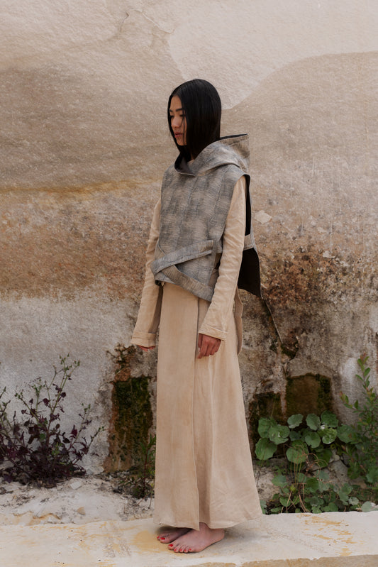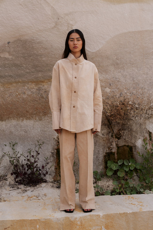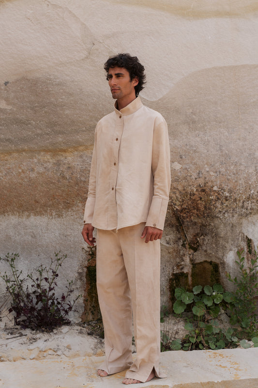 Chemise à Col Haut Upcyclée en Coton Épais et Lin